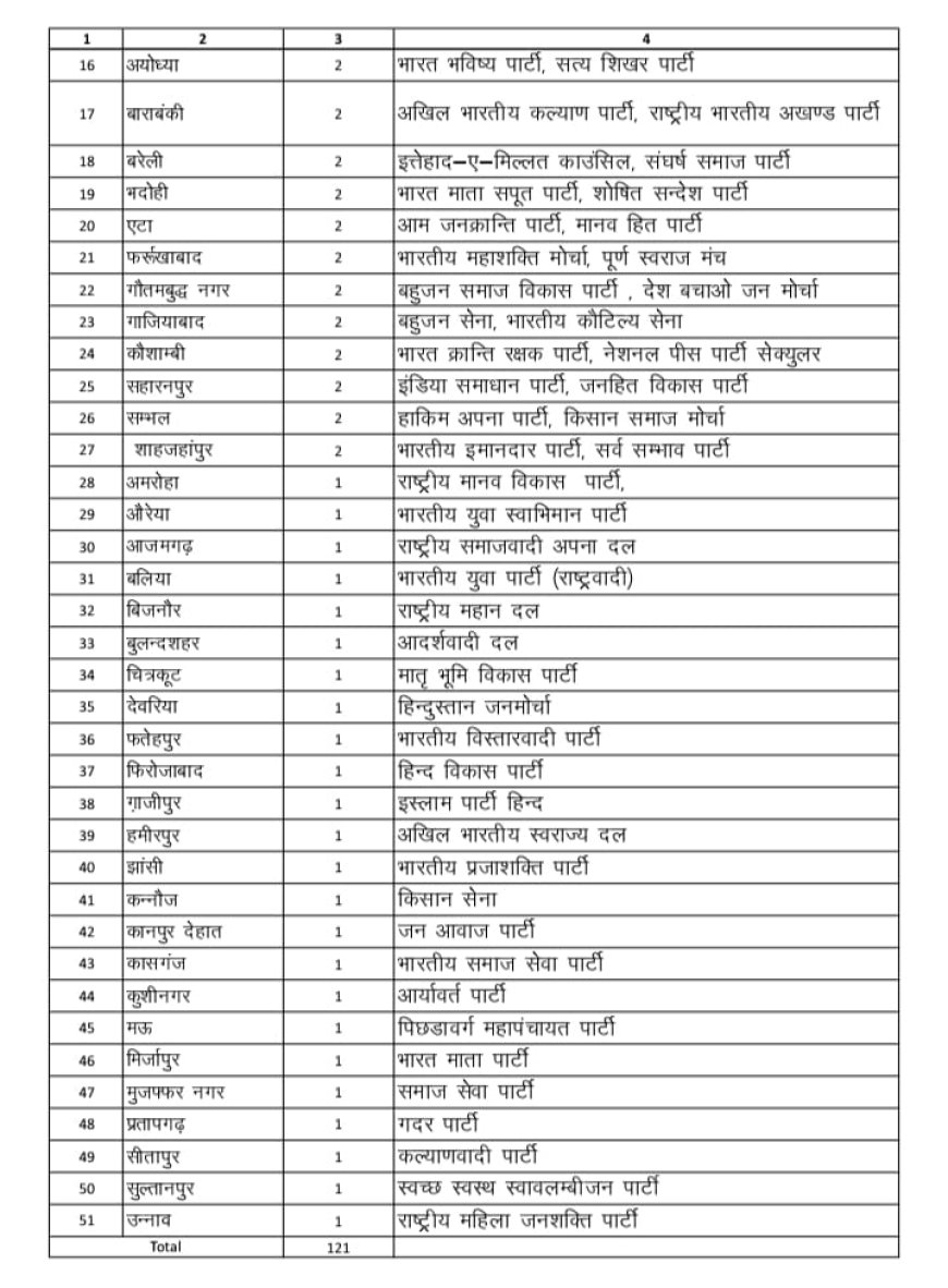 EC ने UP के 121 पंजीकृत राजनैतिक दलों को सूची से हटाया