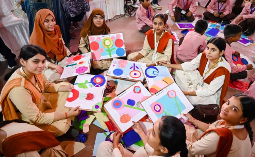 अगले सत्र में बच्चों को रूसी चित्रकार वासिली कैंडिंस्की की प्रसिद्ध “कैंडिंस्की सर्कल्स” से परिचित कराया गया, जो प्रगति और नवीनीकरण का प्रतीक हैं। रंग-बिरंगे कागजों और रंगों का प्रयोग करके बच्चों ने अपने कल्पनाशील गोलाकार चित्र बनाए। बाद में उन्होंने ऑयल पेस्टल और पोस्टर कलर के दो अलग-अलग माध्यमों के साथ प्रयोग कर कागज की सतह के नीचे छिपी आकृतियों को प्रकट किया, जिससे सृजनशीलता की एक नई परत खुली।